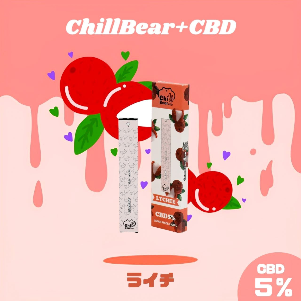 CureBear ChillBear+CBD ベイプ 5% ライチ