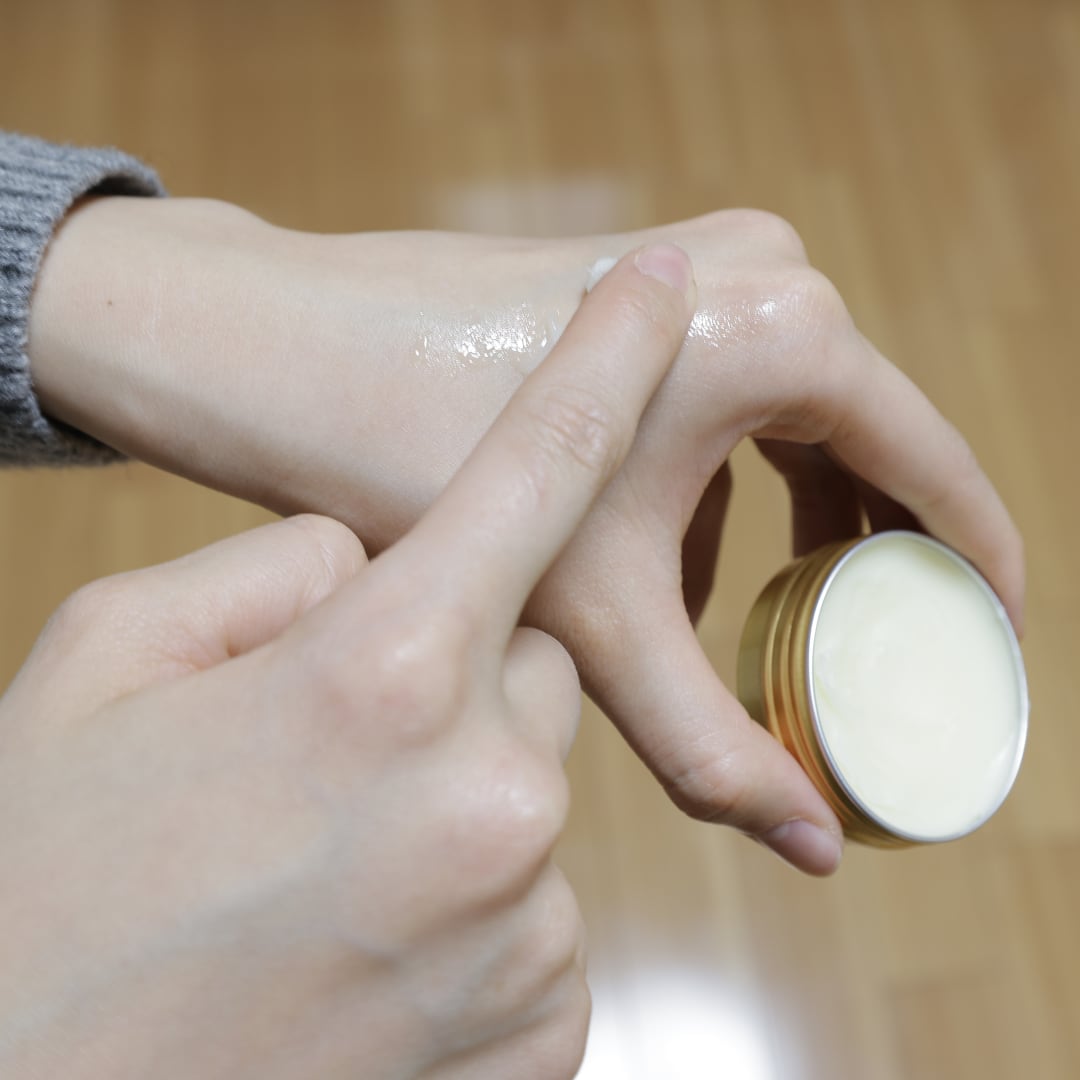 適量を指ですくい、手のひらでよく伸ばして気になる箇所に塗り込んでください。