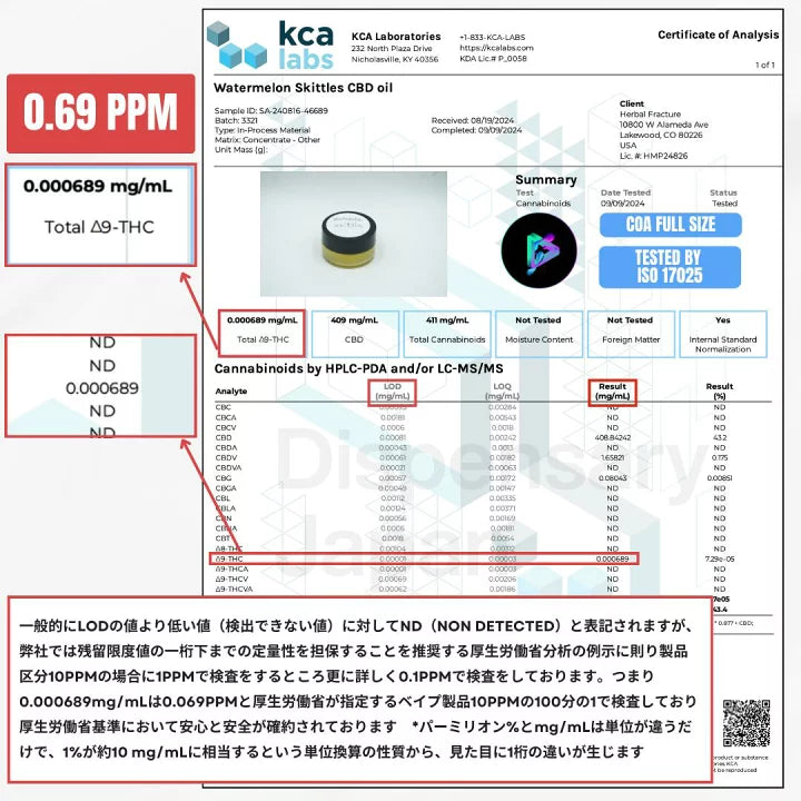 CBD含有量:CBD1224mg / CBDV4.95mg / CBG0.24mg
