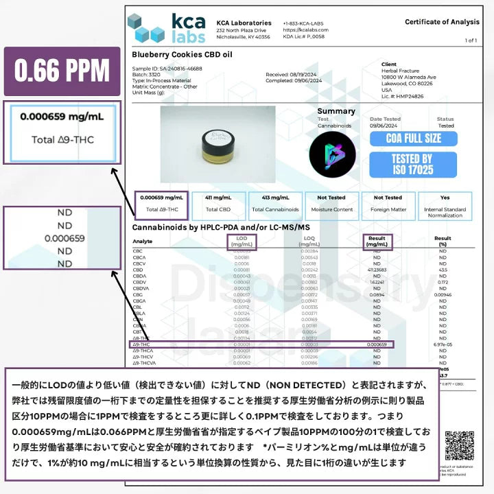 CBD含有量:CBD1224mg / CBDV4.86mg / CBG0.27mg